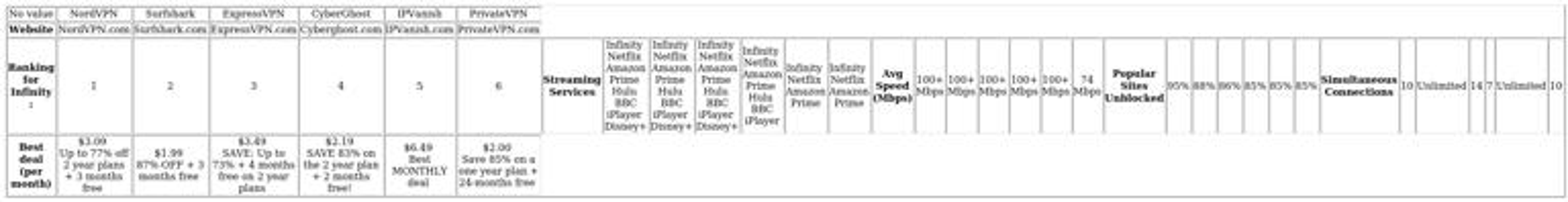 Free VPNs should be avoided for streaming Infinity as they typically offer substandard performance and may compromise your privacy through tracking and data selling. Additionally, they rarely unblock streaming platforms effectively.